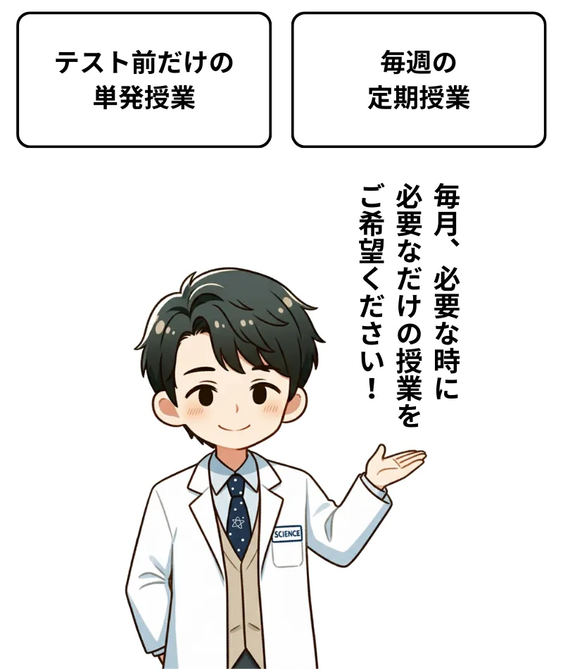 「急にテスト範囲が出たので、追加したい」というリクエストも柔軟にお受けします。