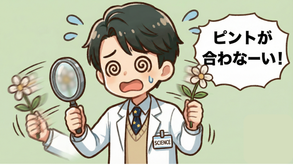 ルーペでありがちなのが、この「両方フラフラ動かして永遠にピントが合わない」問題。